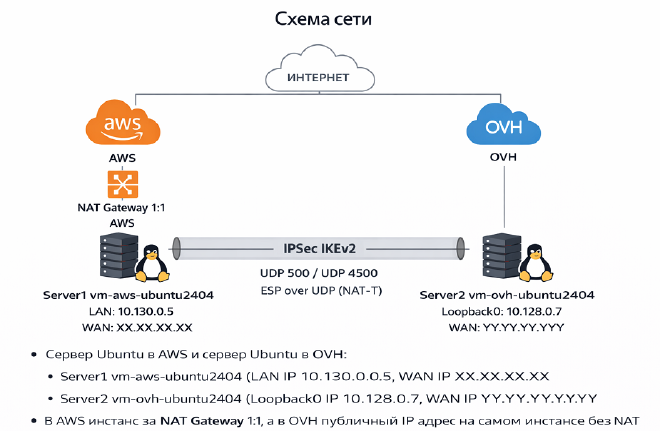 - Сервер Ubuntu в AWS и сервер Ubuntu в OVH: