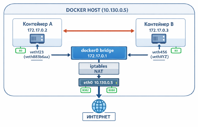 В этой статье мы подробно разберём, как устроена bridge-сеть в Docker, как пакеты проходят через неё и что происходит “под капотом”, когда контейнер общается с внешним миром или с другим контейнером на том же хосте.