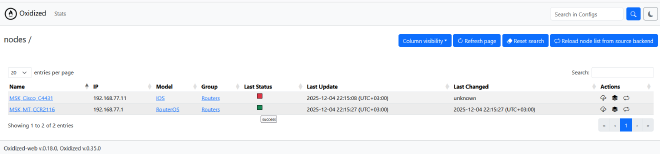 - систему бэкапов конфигураций сетевого оборудования Oxidized